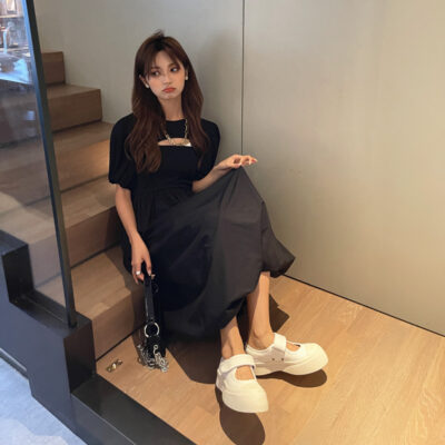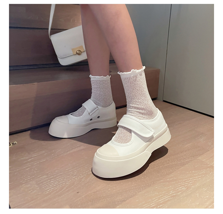 Zhao Lusi cùng kiểu giày vải Mary Jane giày mona nữ xấu xí dễ thương mũi to mùa hè 2023 giày trắng đế dày