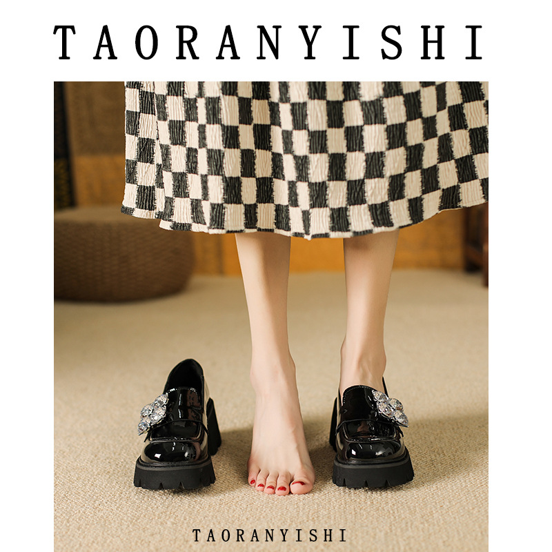 Zhao Lusi cùng phong cách mùa xuân mới 2023 giày nữ ngọt ngào giày lười gót vừa giày lười giày đơn cỡ lớn giày nữ 41-43