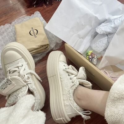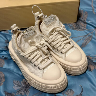 Zhao Lusi với cùng một phong cách tweed DIY khuôn mặt tươi cười giày thể thao đế dày giản dị giày vải đính sequin giày nhỏ màu trắng thời trang nữ