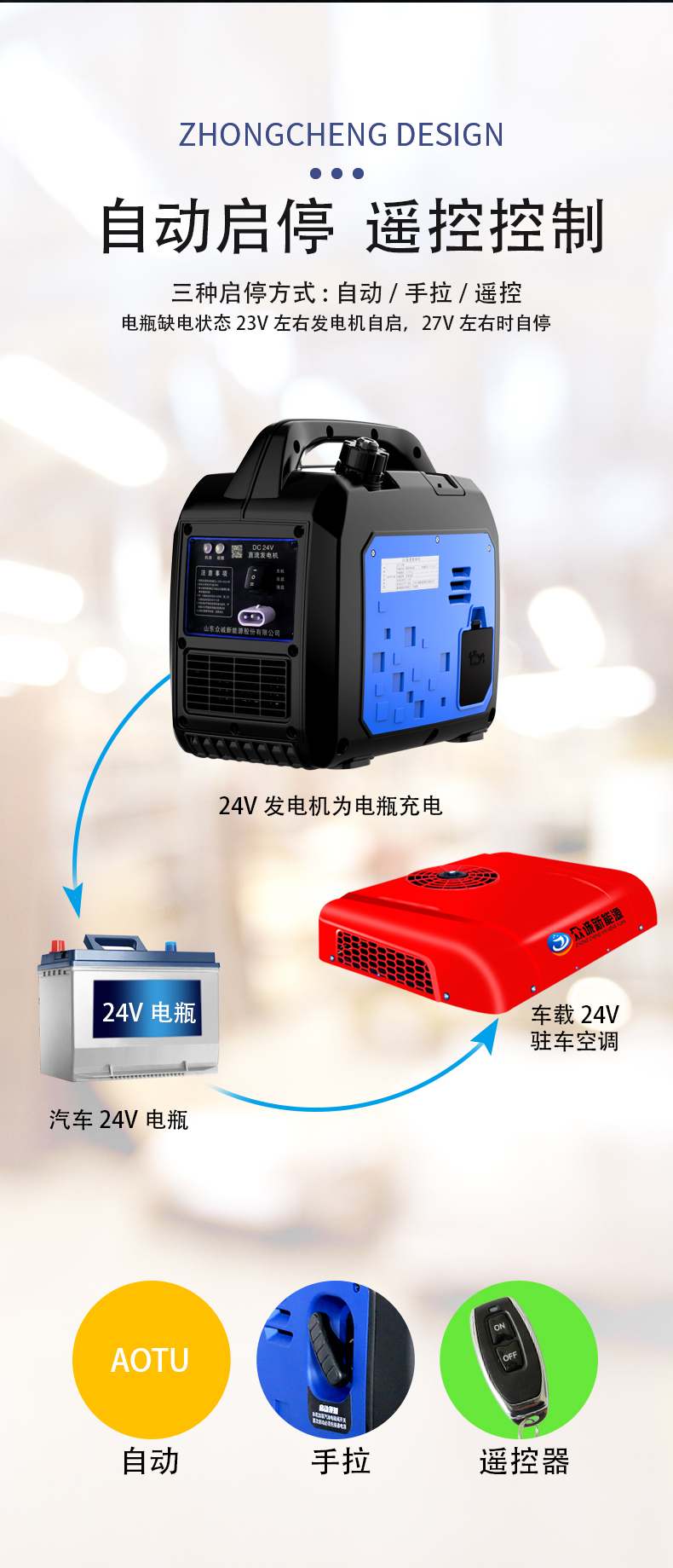 Zhongcheng xe tải 24V bãi đậu xe điều hòa không khí đặc biệt máy phát điện DC miễn phí lắp đặt xe tắt tiếng chuyển đổi tần số nhỏ xăng