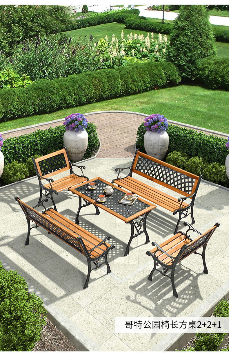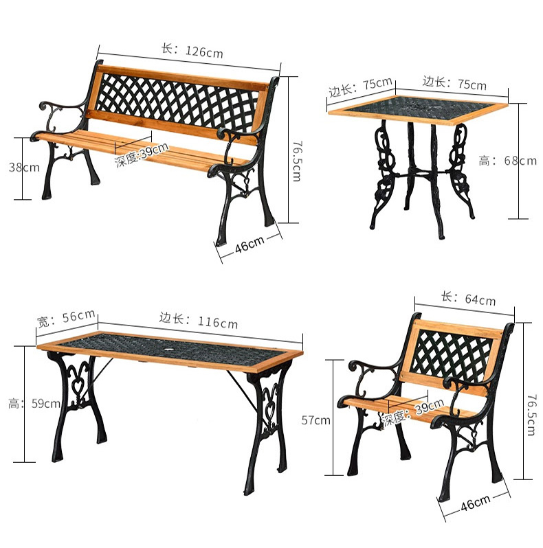 Ziao công viên ngoài trời ghế lá ghế gỗ rắn bàn ghế kết hợp vuông ngoài trời ban công phơi nắng tựa lưng gỗ công viên