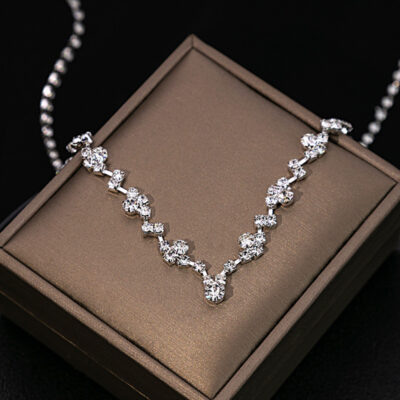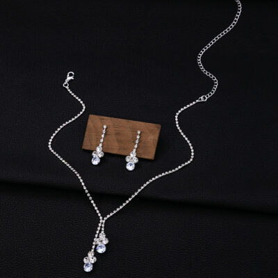 Zircon Hoa Cưới Vòng Cổ Full Kim Cương Thả Tua Rua Phụ Kiện Cô Dâu Tiệc Tối Thời Trang Bộ 2 Bông Tai