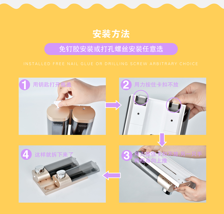 Sản phẩm nổi bật với các tính năng: ZN0W bán buôn punch-free xà phòng nhà bếp xà phòng rửa tay máy treo tường khách sạn dầu gội sữa tắm hộp treo tường. Quý khách có nhu cầu mua Máy rửa tay nhập khẩu vui lòng liên hệ với chúng tôi để được tư vấn hỗ trợ. Dịch vụ mua hàng Trung Quốc sẽ hỗ trợ quý khách mua hàng từ nhà cung cấp và giao tới tận tay quý khách hàng..