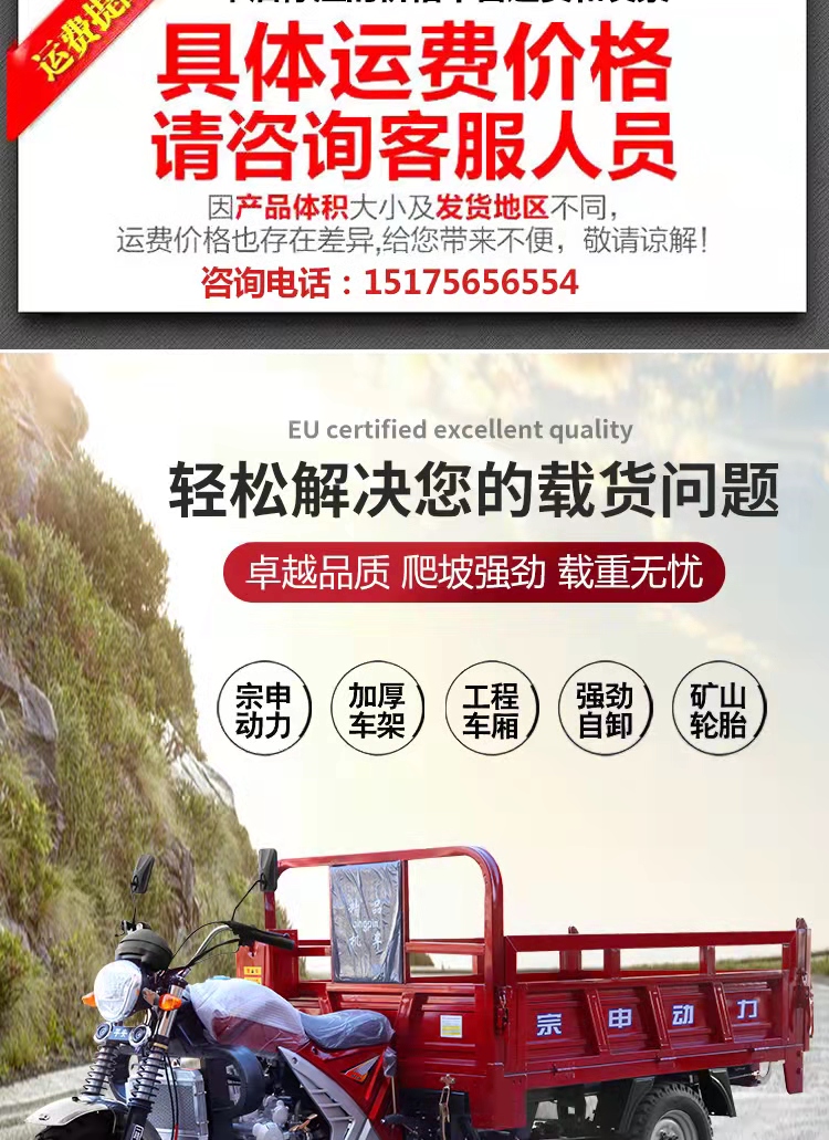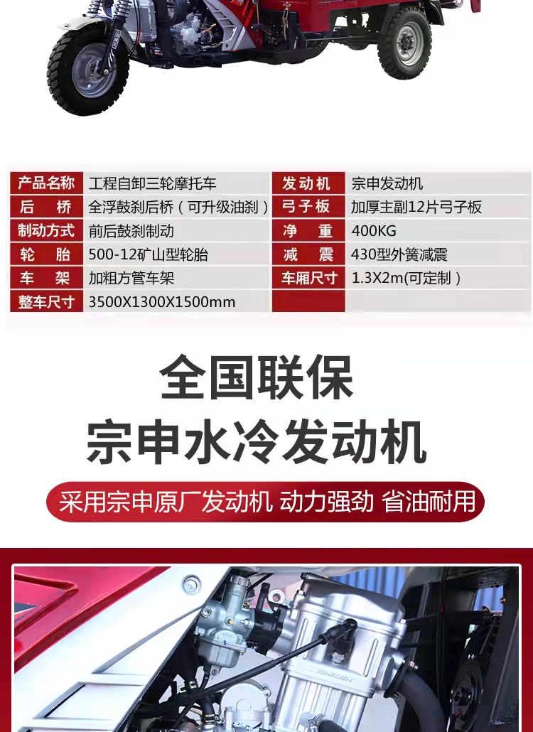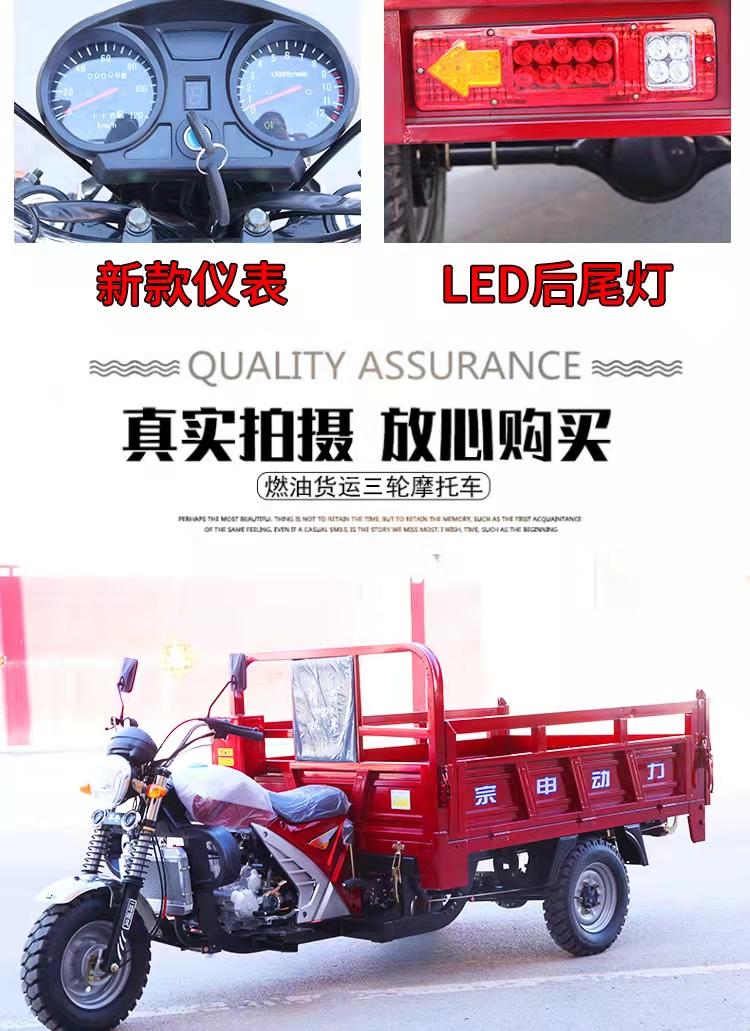 Zongshen điện xăng xe máy ba bánh nhiên liệu gia dụng thương hiệu mới tự dỡ tải xô nghiêng nông nghiệp kéo hàng hóa vua tải