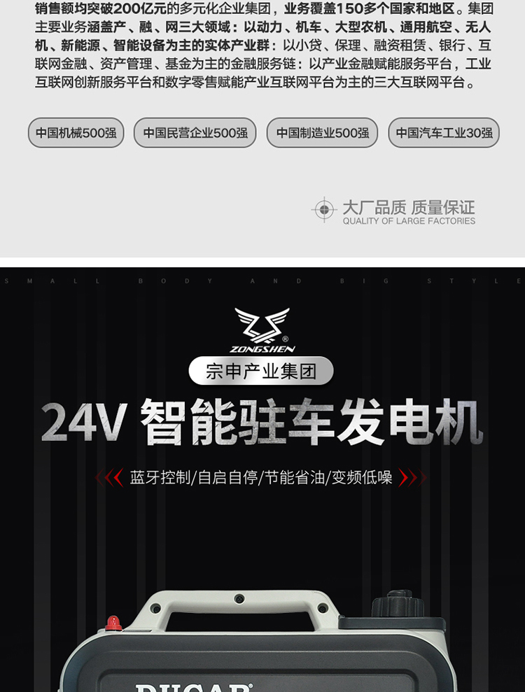 Zongshen Duka Bluetooth 24V vôn đậu xe điều hòa không khí im lặng Máy phát điện DC di động xe tải lớn máy phát điện chạy xăng
