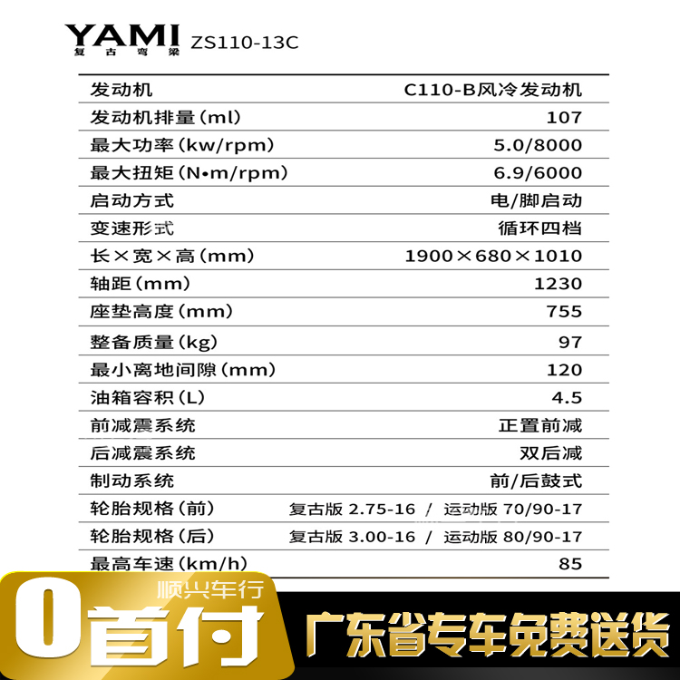 Zongshen YAMI Yami Gầm cong cổ điển Guosi EFI Xe máy mới nhẹ, tiết kiệm nhiên liệu và không gây tiếng ồn có thể được cấp phép