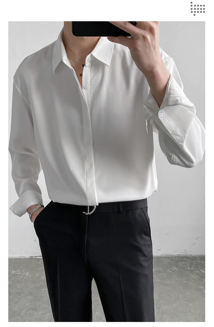 ZPZ nhẹ nhàng phong cách quen thuộc Phiên bản Hàn Quốc áo sơ mi nam dài tay trơn màu trơn hàng đầu xu hướng mùa xuân hè xếp nếp áo sơ mi sắt miễn phí