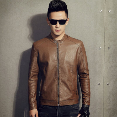 Thương mại điện tử Xuất khẩu Amazon mùa xuân và mùa thu nam cổ đứng màu trơn áo khoác da pu xe máy áo khoác da nam cỡ lớn