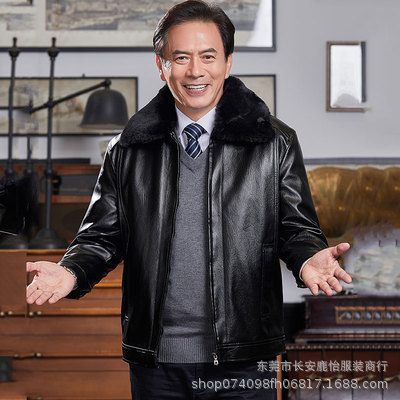 Áo khoác da trung niên mùa đông cộng với nhung dày 2023 quần áo nam mới phù hợp với xu hướng thu đông áo khoác da nam