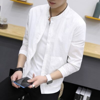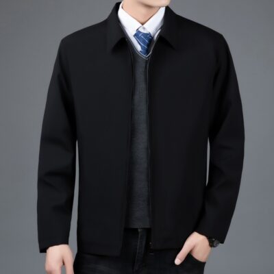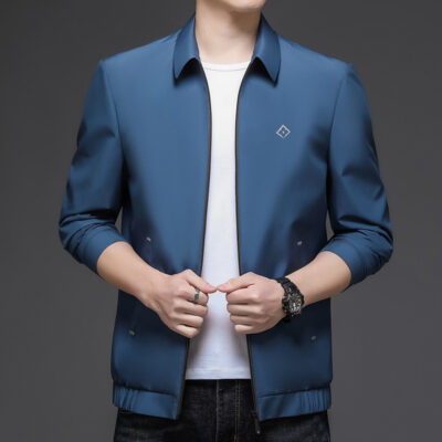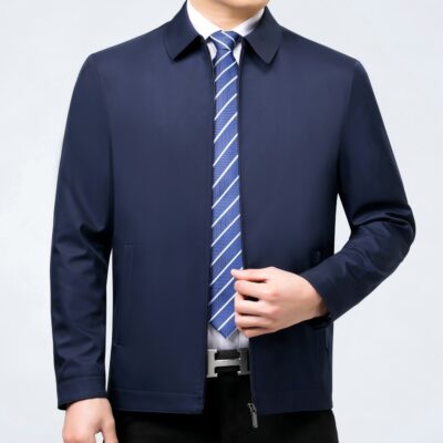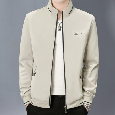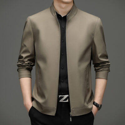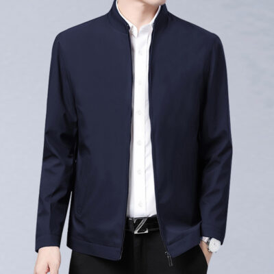 Thương Hiệu Nam Dâu Tằm Áo Khoác Cổ Đứng Xuân Thu Mới Dây Kéo Trung Niên Công Sở Mỏng Không Cần Ủi Áo Khoác