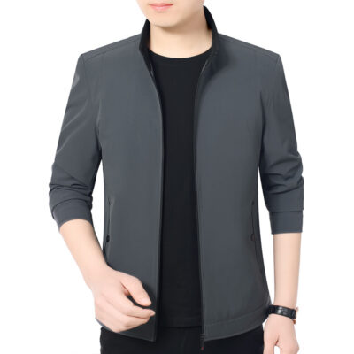 Áo khoác nam trung niên và cao tuổi mùa xuân và mùa thu sản phẩm mới cổ áo đứng công sở bình thường bố áo khoác nam dáng rộng giản dị áo khoác nam