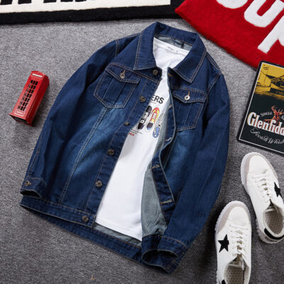 Áo khoác denim nam trẻ trung phong cách Hàn Quốc áo khoác hợp thời trang fat man plus fat plus áo choàng dáng rộng cỡ lớn mùa xuân và mùa thu