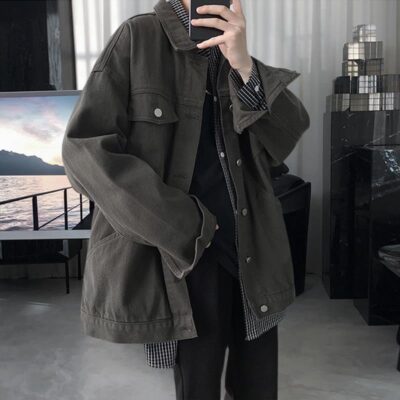 Nhà Máy Tùy Chỉnh Nhật Bản Retro Mùa Xuân Và Mùa Thu Mới Dáng Rộng Phiên Bản Hàn Quốc Có Mũ Áo Khoác Mỏng Áo Khoác Nam Tùy Chỉnh