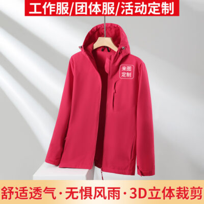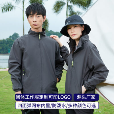 Áo khoác mới áo gió mùa xuân và mùa thu đấm đơn áo khoác không thấm nước cao điểm quần áo yếm nhóm quần áo dụng cụ in logo