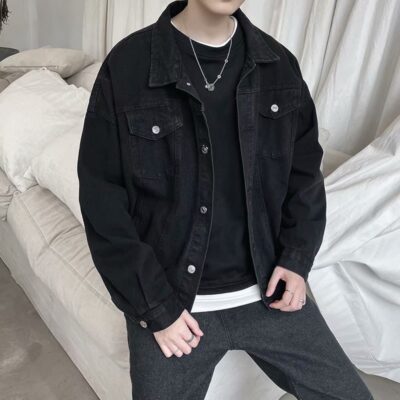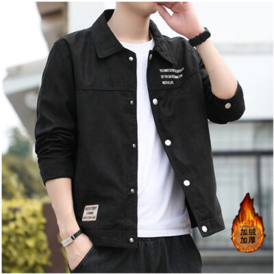 Một loạt áo khoác denim nam mùa xuân và mùa thu tại chỗ màu xanh denim trẻ trung áo khoác nam màu đen