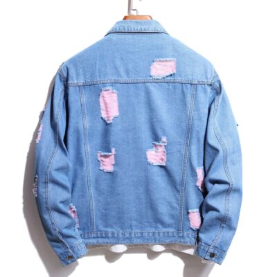 Amazon Wish ngoại thương mùa thu mới nam denim rách áo khoác ăn xin Kích thước châu Âu ngoại thương bán buôn