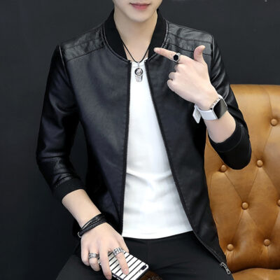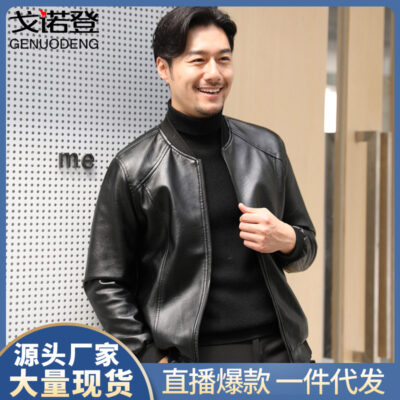 Mùa Thu Đông Da Nam Cổ Bóng Chày Trung Niên Áo Khoác Da Nam Da PU Nam Xe Máy Phù Hợp Với Áo Khoác Điểm Bán Buôn