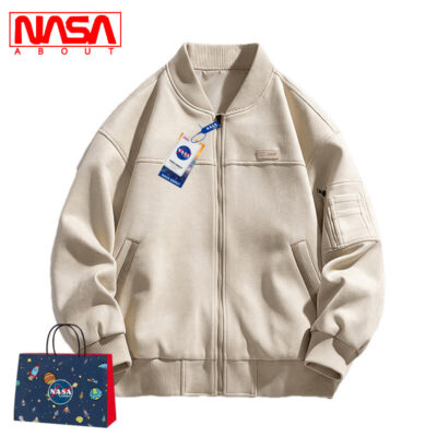 NASA Da Lộn Cổ Đứng Áo Khoác Nam Retro Phong Cách Mỹ Mùa Xuân Đồng Phục Bóng Chày Thủy Triều Thương Hiệu Cặp Đôi Áo Khoác Nam Mặc