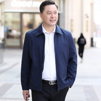 Xuân Thu Xuất khẩu Mới Áo Khoác Nam Cổ Đứng Dây Kéo Tay Dài Công Sở Áo Khoác Size Lớn Trung Niên Bố Mặc