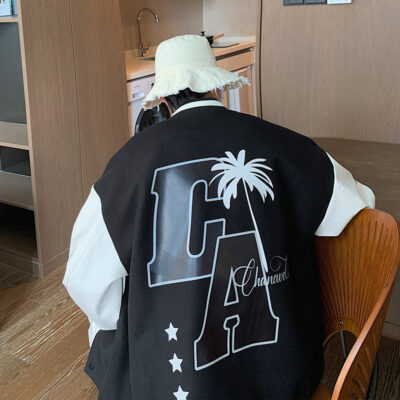Nhà máy Tùy Chỉnh Áo Khoác Nam Retro High Street Thêu Topstitching Lỏng Lẻo Đồng Phục Bóng Chày Áo Khoác Bản Vẽ và Mẫu