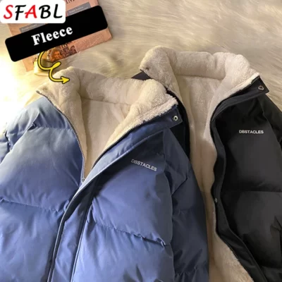Mùa Đông Áo Khoác Nam Cổ Áo Đứng Nút Làm Dày Chống Gió Bóng Chày Áo Khoác Ấm Cặp Đôi Dạo Phố Cao Cấp Đệm Quần Áo