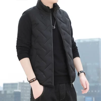 Mùa Thu Đông Áo Khoác Nam Ấm Áp Dây Kéo Chống Thấm Nước Áo Vest Phối Thời Trang Cổ Đứng Không Tay Phối Kéo Xuống