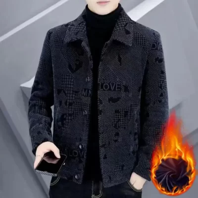 Áo khoác mùa đông Nam Lambswool Ấm Làm Dày Áo Chạy Bộ Cổ Khóa Kéo Lên Áo Khoác Nam Áo Sang Trọng Lót Áo Cardigan