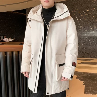 Nam Mùa Đông Ấm Áp Nam Áo Khoác Thu Đông Quần Áo Cổ Đứng Xuống Áo Khoác Mũ Dày Trắng Vịt Áo Khoác Lông Thú nam