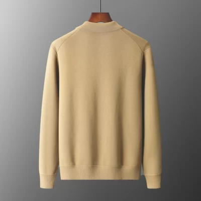 Mới 2023 Mùa Thu Đông Cashmere Cardigan Nam Cổ Polo Áo Len Dài Tay Dệt Kim Phong Cách Doanh Nhân Áo Len Màu Trơn