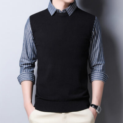 Áo Len Hai Mảnh Giả Nam Thu Đông 2020 Mới Cổ Sơ Mi Phiên Bản Hàn Quốc Slim-Fit Áo Len Nam Áo Len Bán Buôn