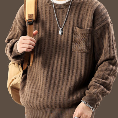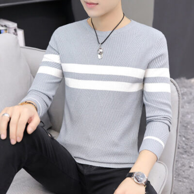 Mùa thu đông giản dị áo đáy quần áo áo sọc nam sản phẩm mới áo len cổ tròn nam mới 2312