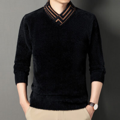 Mùa Đông Mới Dày Dặn Áo Len Lông Cừu Nam Trẻ Trung Màu Cổ Khăn Phong Cách Hàn Quốc Áo Len Nam Đáy Áo Sơ Mi