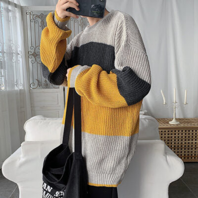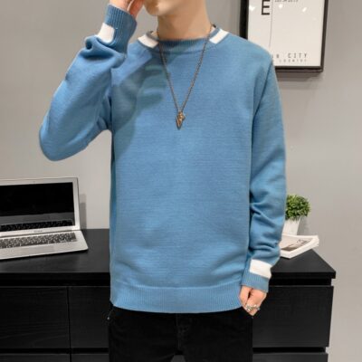 Mùa thu đông mới áo len nam cổ tròn dáng rộng phong cách Hàn Quốc hợp xu hướng phối màu áo len nam áo chui đầu áo khoác
