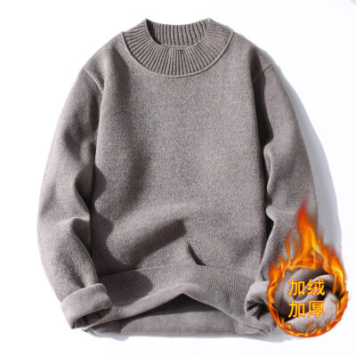 Mùa đông áo len học sinh trung học nam cộng với nhung dày trẻ trung phiên bản Hàn Quốc của áo sơ mi đáy mỏng áo len dệt kim dày cho nam