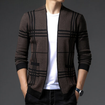 Bán buôn tại chỗ mùa thu và mùa đông áo len nam kẻ sọc mới dệt kim cardigan slim-fit dài tay phiên bản Hàn Quốc cổ chữ V áo khoác giản dị