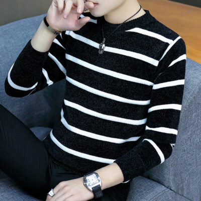 Mùa Thu Đông Mới Quần Áo Nam Nam Dệt Kim Sọc Chui Đầu Áo Len Cổ Tròn Nam Đáy Áo Len