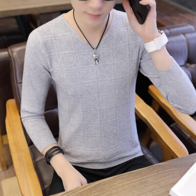 Áo len nam cổ thấp mùa thu cổ chữ V mỏng phong cách Hàn Quốc Quần áo mỏng lót nam Áo len dệt kim mùa thu có đáy áo sơ mi nam