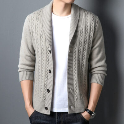 2023 xuất khẩu Mới Thời Trang Thu Đông Áo Len Nam Dài Tay Ve Áo Trên Áo Len Cardigan