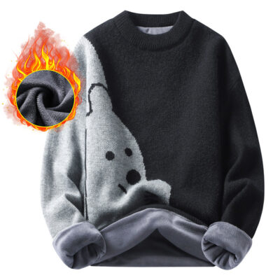 Áo len cổ tròn nam họa tiết gấu cá tính cộng với áo len dày nhung mùa thu đông thường phù hợp với tất cả các trận đấu áo len dệt kim dày