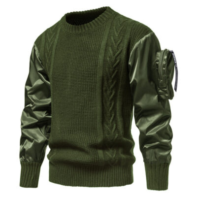 Áo khoác len cổ tròn phối túi ba chiều cá tính cho nam Âu Mỹ mùa thu đông 2021
