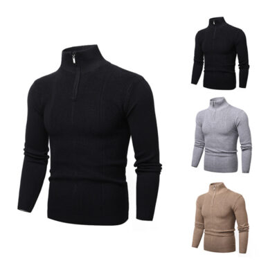 Ngoại Thương 2021 Thu Đông Áo Len Mới Plus Nhung Dày Dặn Nam Cổ Cao Dây Kéo Áo Len Mỏng Áo Len Thường Ngày