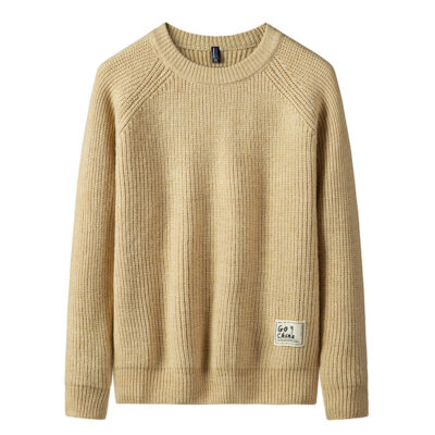 Áo len nam xuân thu phong cách mới cổ tròn màu trơn áo len dệt kim dáng rộng áo sơ mi nam đáy 0551533