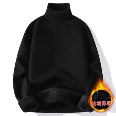 Phân Phối Sỉ Một Nhung Cao Cổ Áo Len Nam Plus Nhung Dày Ấm Mỏng Dài Cổ Áo Len Dệt Kim Đáy Áo Sơ Mi