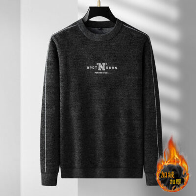 Lớn Béo Người Mùa Đông Dày Nam Plus Kích Thước Plus Kích Thước Voan Plus Nhung Ấm Áo Len Cổ Tròn Cổ Đáy Áo Sơ Mi