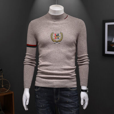 Ngoại thương mới áo thun nam in hình nam cổ cao tay dài thu đông có đáy áo len dệt kim nam áo chui đầu Hàn Quốc