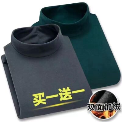 Áo thun dài tay nhung hai mặt cho nam cộng với nhung nửa cao cổ áo len cỡ lớn ấm áp áo len hợp thời trang