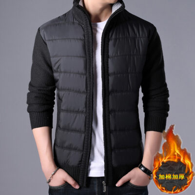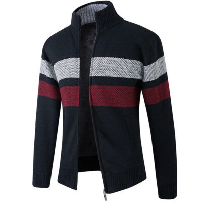 Bán Buôn Áo Len Cardigan Nam Phối Màu Plus Lông Cừu Dày Cổ Dệt Kim Cao Cấp Nam Áo Khoác Ngoài Thời Trang Ấm Áp