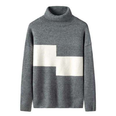 Nhà máy xuất khẩu ngoại thương mùa thu nam áo len cổ cao nửa mới thanh niên áo len cá tính màu tương phản đơn giản