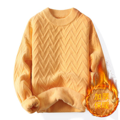 Áo len lông cừu dày cho nam mùa thu đông ve áo cao phiên bản Hàn Quốc thanh niên hoa xoắn áo len chui đầu thời trang áo len cổ cao triều