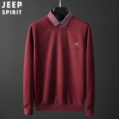 Chenille quần áo mùa thu bố áo len dài tay cổ tròn nam mùa thu áo len dệt kim trung niên và cao tuổi có đáy áo sơ mi nam trung niên